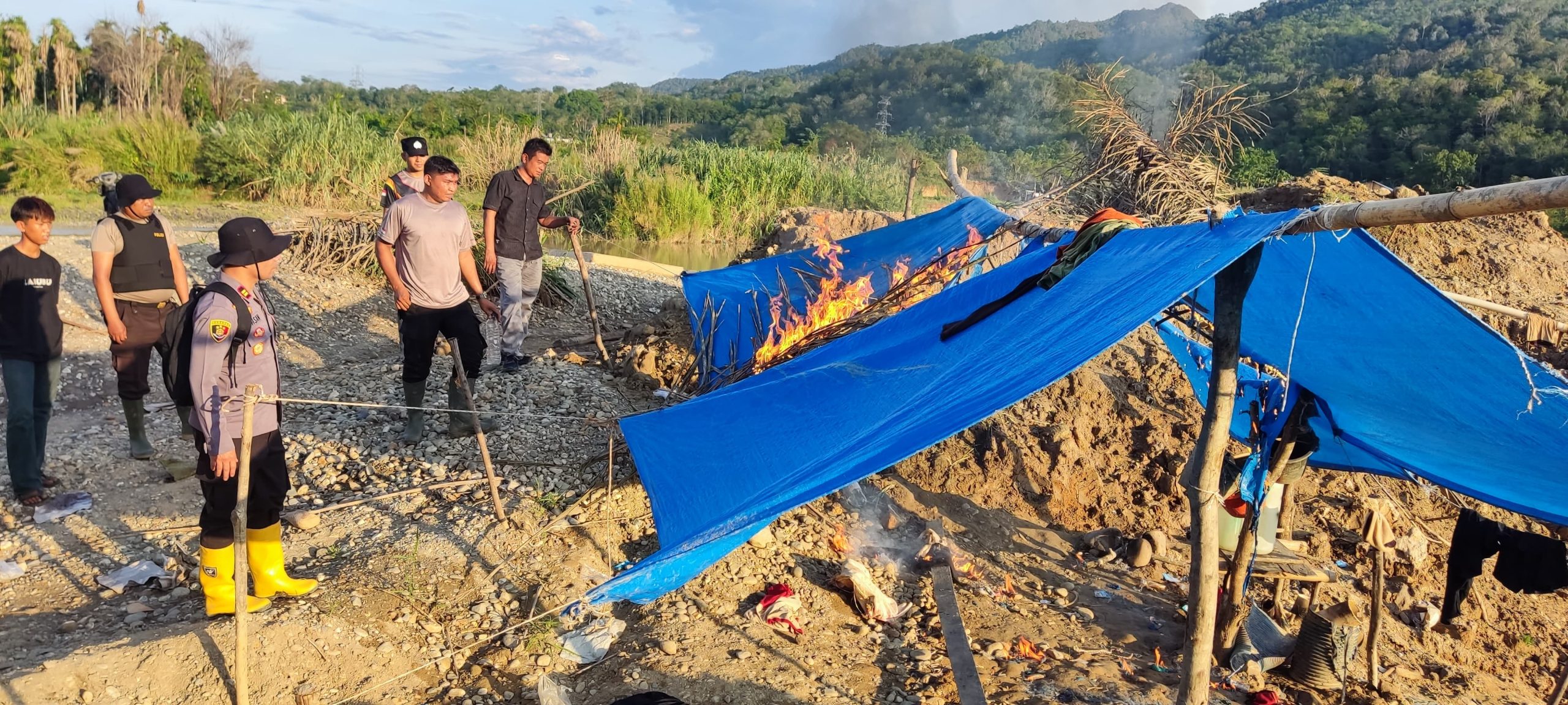 Dari hasil patroli di ketiga wilayah, tidak ditemukan aktivitas PETI yang masih berlangsung. Namun, ditemukan bekas galian, pondok, dan peralatan tambang yang ditinggalkan. Tim melakukan pembongkaran terhadap fasilitas yang tersisa untuk mencegah kegiatan kembali beroperasi.