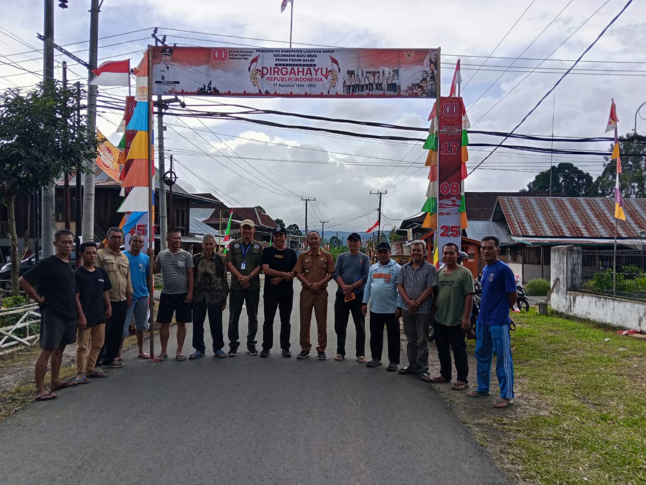 SATYABHAYANGKARA-Lampung Barat– Peringatan Hari Ulang Tahun (HUT) ke-80 Republik Indonesia dimaknai warga Desa Pekon Balak , Kabupaten Lampung Barat untuk membenahi lingkungan tempat tinggal. pendirian gapura agar peringatan HUT ke-80 Indonesia lebih meriah.