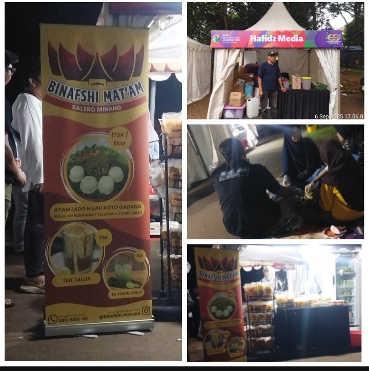 Jakarta Timur | Aroma khas kuliner Minangkabau ikut mewarnai kemeriahan World Muslim Scout Jambore 2025 yang sekaligus menjadi momentum bersejarah 100 Tahun Pondok Modern Darussalam Gontor. Sabtu malam (6/9/2025), kawasan Bumi Perkemahan Cibubur, Jakarta Timur tidak hanya dipenuhi aktivitas pramuka dunia, tetapi juga menjadi ajang pertemuan ragam budaya, termasuk cita rasa kuliner Nusantara.