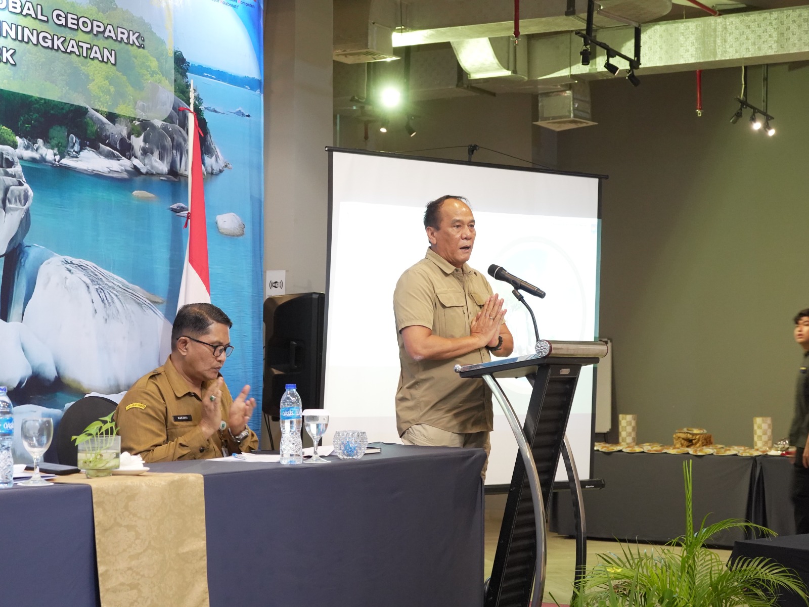 “Geopark tidak cukup hanya mengandalkan status internasional, tapi harus benar-benar dikelola dengan baik dan memberi manfaat nyata,” ujarnya saat membuka kegiatan di Hotel Golden Tulip, Belitung, Senin (13/04/2026).