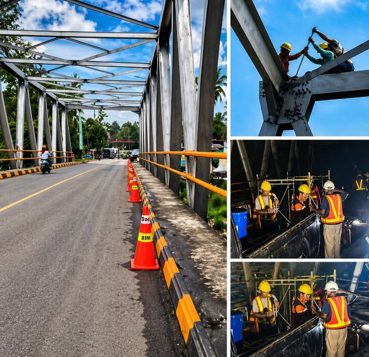 Ia menjelaskan bahwa pekerjaan dilakukan bukan karena kerusakan sudah parah, melainkan untuk mencegahnya. “Kita tidak menunggu sampai rusak. Banyak yang terlihat masih bagus, tapi secara teknis sudah harus ditangani,” katanya. Pendekatan ini dinilai lebih efektif dalam menjaga fungsi jembatan tetap optimal.